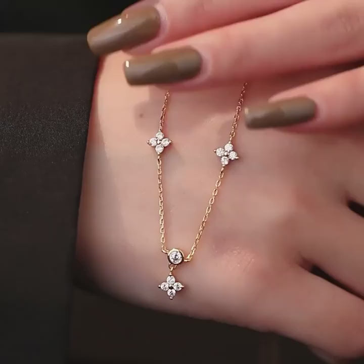 Carry your charm close to your heart with the Circle of Luck Clover Necklace. Brilliant moissanite stones sparkle within circular frames and clover shapes, a timeless symbol of fortune and love.